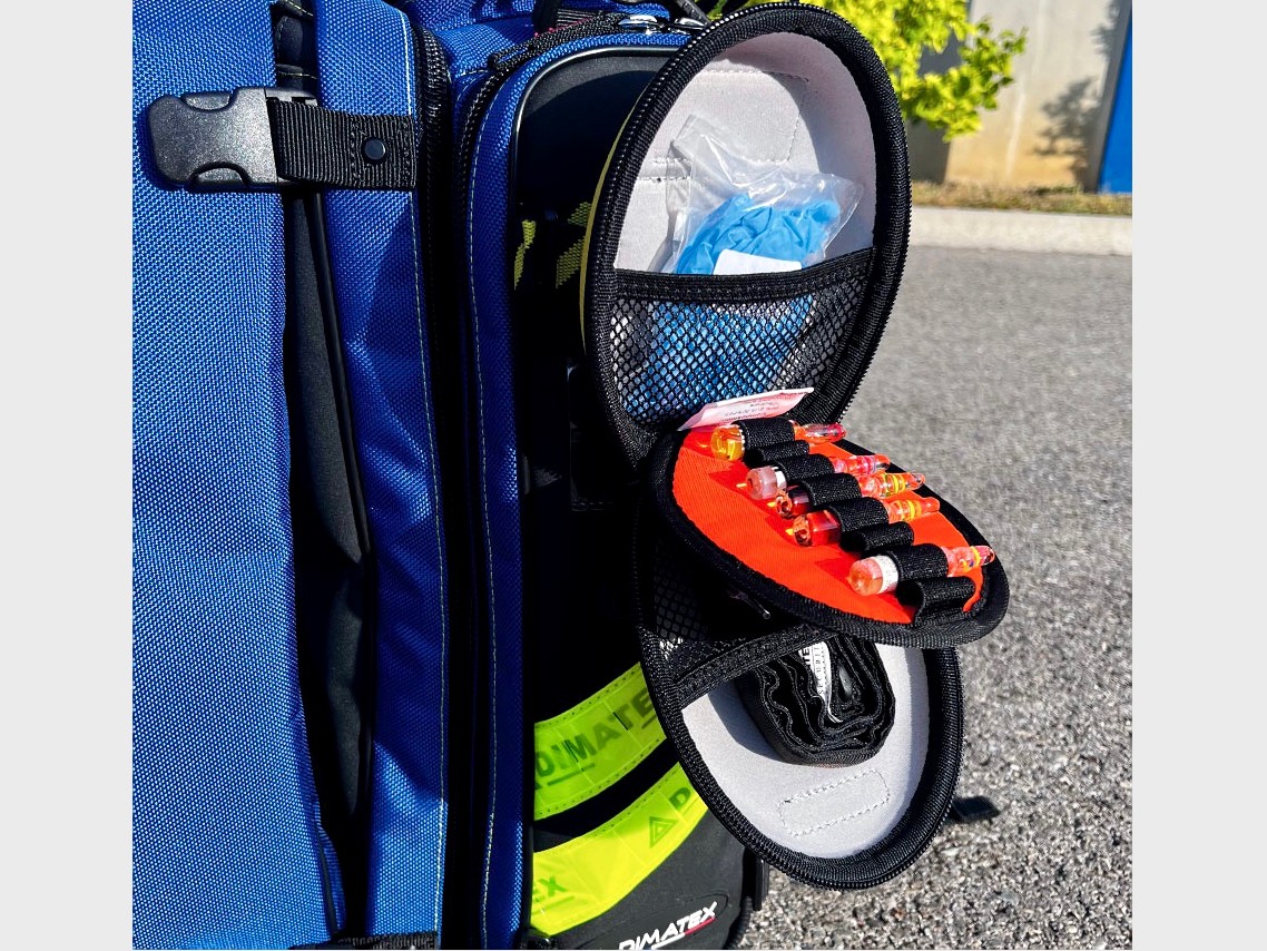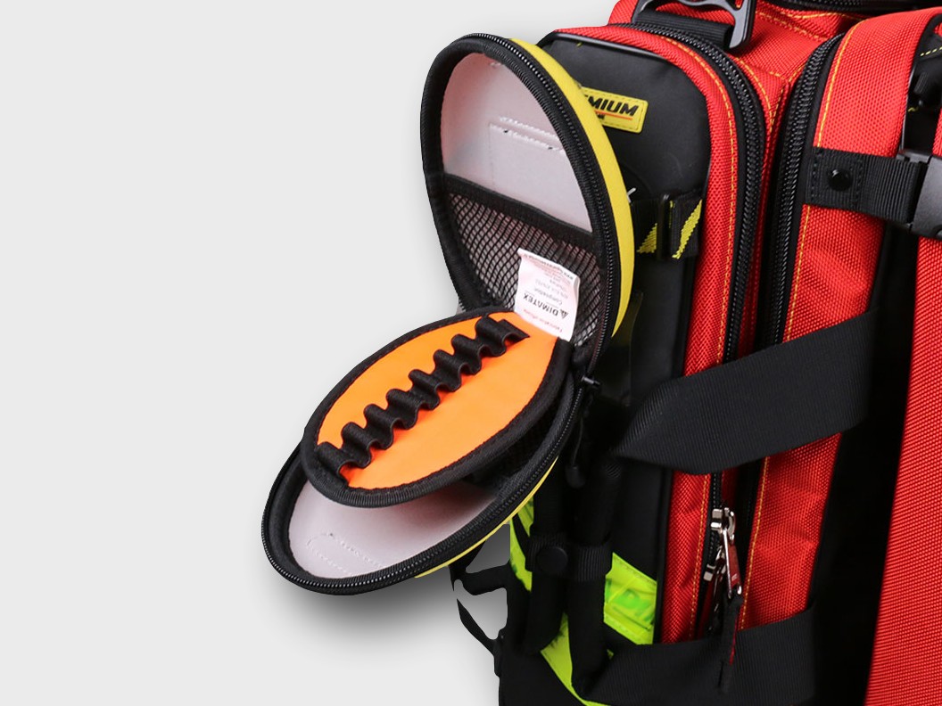 Hergestellt aus robustem Polyester 900D mit zusätzlicher Verstärkung zum Schutz empfindlicher Ampullen. Der doppelte YKK-Reißverschluss mit Zipper-Pullern sorgt für zuverlässigen Verschluss, auch bei intensivem Gebrauch. Der Klettverschluss an der Außenseite ermöglicht feste Befestigung in Notfalltaschen.