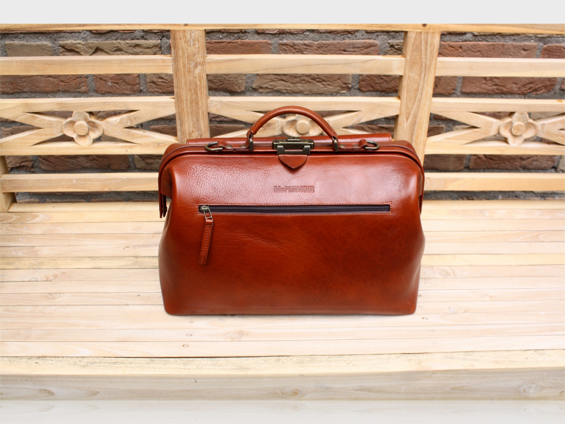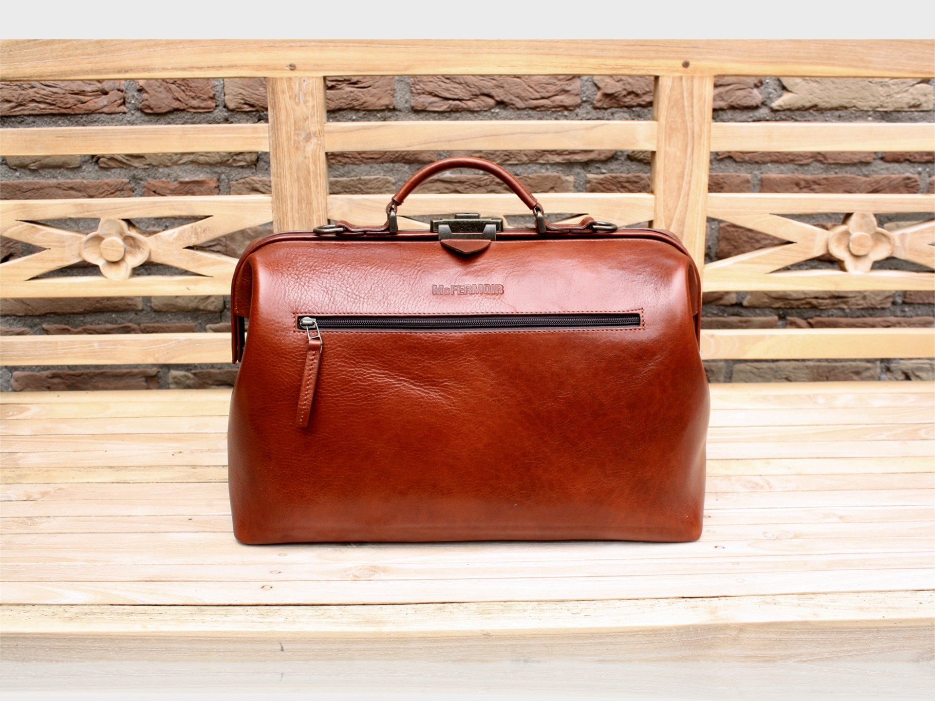 Die McFermoir Arzttasche Wout 3014 Cognac ist eine der besten und praktischsten Arzttaschen. Robust und geräumig, entwickelt in Zusammenarbeit mit Hausärzten. Handgefertigt aus pflanzlich gegerbtem Leder aus der Toskana mit einem schönen weichen Glanz. Diese kompakte Variante ohne A4-Vorfach bietet eine klassischere Ausstrahlung – eine nachhaltige Tasche fürs Leben.