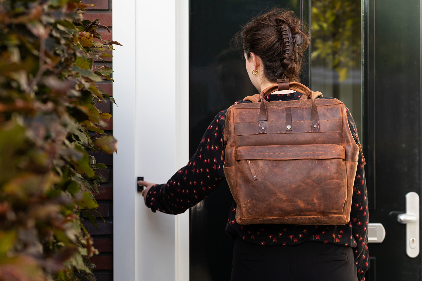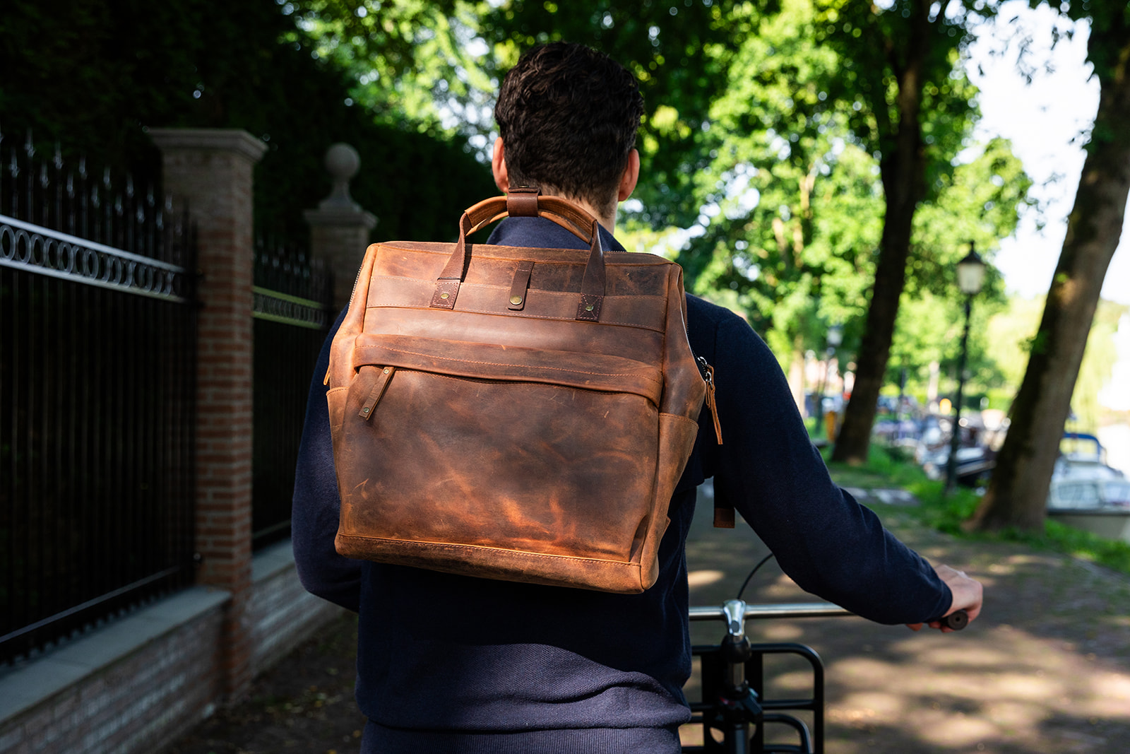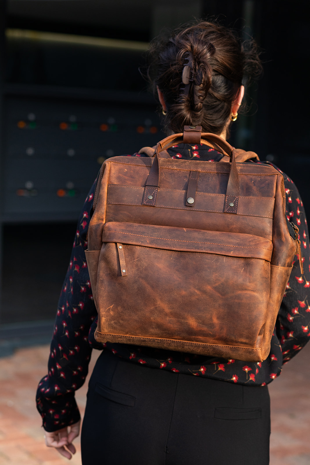 Der Visiten-Rucksack Zipper ist erhältlich in: Braun, Cognac, Dunkelbraun und Cemento