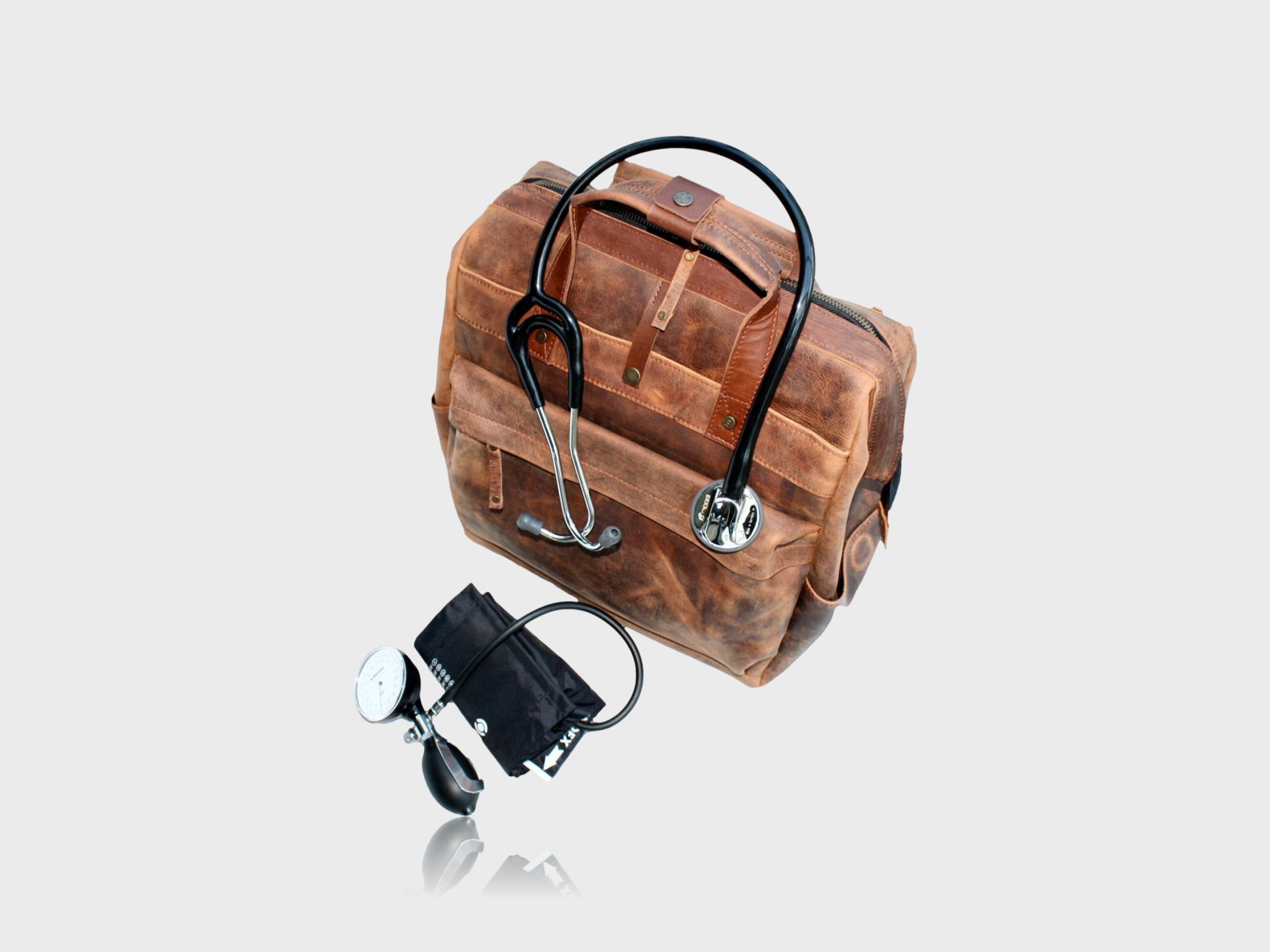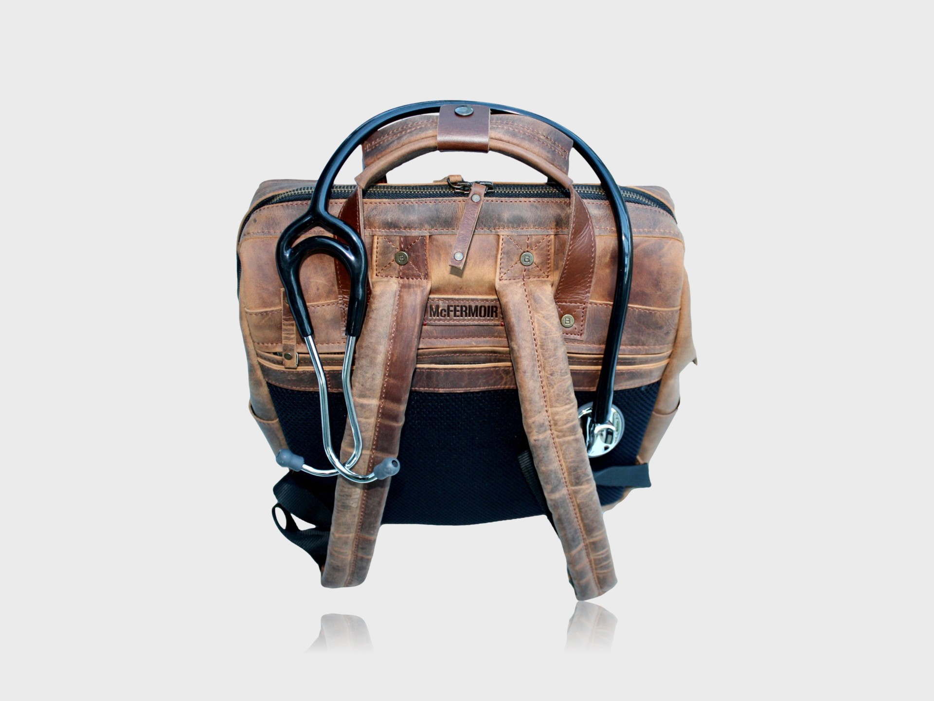 Der McFermoir Visiten-Rucksack Zipper Braun kombiniert elegantes Design mit optimaler Funktionalität. Diese vielseitige Arzttasche kann sowohl als Rucksack als auch als Handtasche getragen werden und bietet durch ein durchdachtes Design maximalen Komfort und Zugänglichkeit während Hausbesuchen. Durch die intelligente Konstruktion bleibt die Tasche perfekt geöffnet, wodurch alle Instrumente direkt erreichbar sind. Ausgeführt in der klassischen Farbe Braun. Nachhaltig und praktisch.